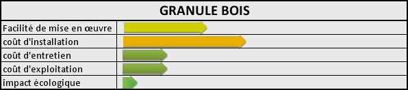 Les chaudières à granulés sont entièrement automatiques. Elles apportent les mêmes prestations de confort que les chaudières fuel ou gaz. Elles possèdent un stockage permettant une autonomie d'une année de chauffe (chauffage et eau chaude sanitaire). Ce stockage est peu volumineux, en moyenne 5 m2 au sol, en raison de la forte densité du granulé de bois. Ce granulé de bois, aussi connu sous le terme anglais de pellet, est un bâtonnet cylindrique de combustible compacté. Il est principalement issu du compactage des résidus de scieries comme les sciures et copeaux provenant directement de la sylviculture.